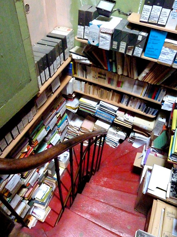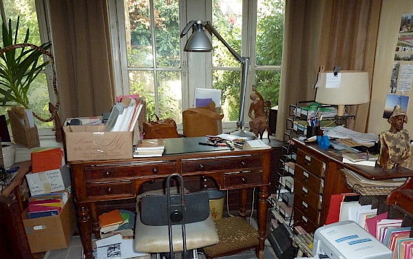Un véritable « tourbillon » d’archives, au propre comme au figuré : telles apparaissent les archives de Françoise Tétard qui tapissent de son vivant le tour de son escalier tournant quasiment de la cave au grenier ! Françoise note, recopie, photocopie, rédige de son écriture ronde et régulière. Elle écrit à tout moment et sur tous types de supports : sur ses carnets personnels lorsqu’une idée ou une formule intéressante la traverse, sur des feuilles blanches le plus souvent, ultérieurement classées dans des chemises puis dans des boîtes, ou sur tout ce qui peut lui tomber sous la main : une enveloppe, un tract, une nappe de restaurant qui sera ensuite déchirée et emportée…